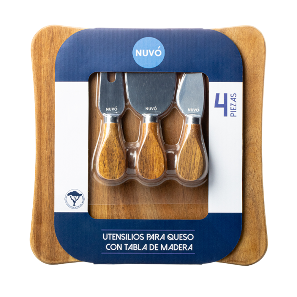 Tabla Para Quesos Con Utensilios Madera Nuvó