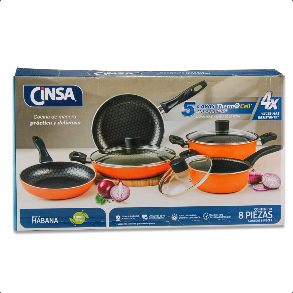 La Batería De Cocina Habana 8 Piezas Aluminio Cinsa ofrece rendimiento, estilo y practicidad en cada preparación. Ideal para hogares que buscan renovar su cocina con productos funcionales y duraderos. No te pierdas la oportunidad de cocinar con comodidad, seguridad y confianza.