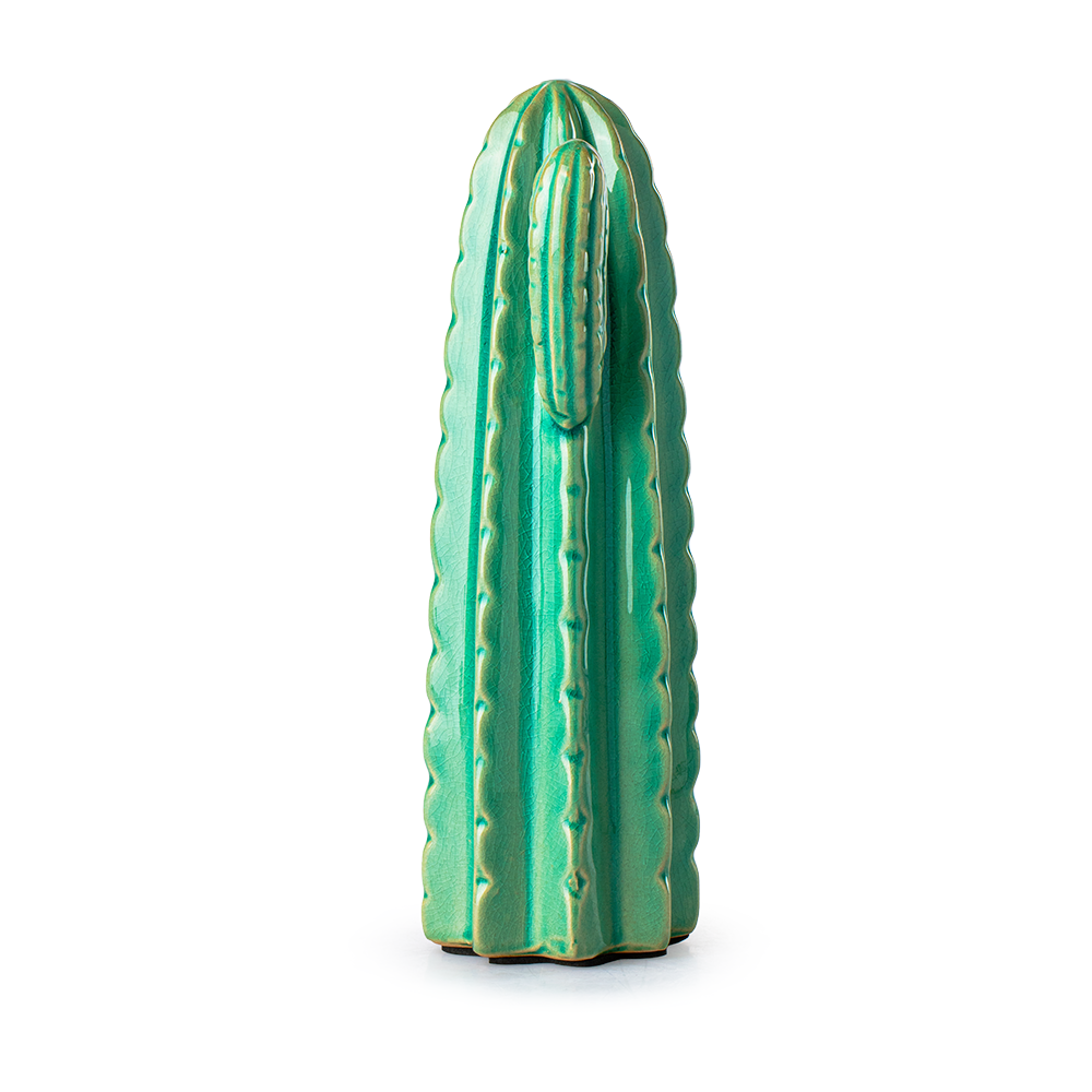 Fabricado en cerámica resistente, el Cactus Decorativo combina estilo con durabilidad, asegurando que tu decoración se mantenga impecable por años. Con unas medidas de 25cm de altura, 13cm de ancho y 8cm de diámetro en la base. Su tamaño es perfecto para colocarlo en estanterías, escritorios, mesas auxiliares o incluso como parte de un arreglo temático más grande. Su presencia añade altura y textura al ambiente, creando un contraste visual atractivo que destaca entre otros elementos decorativos.