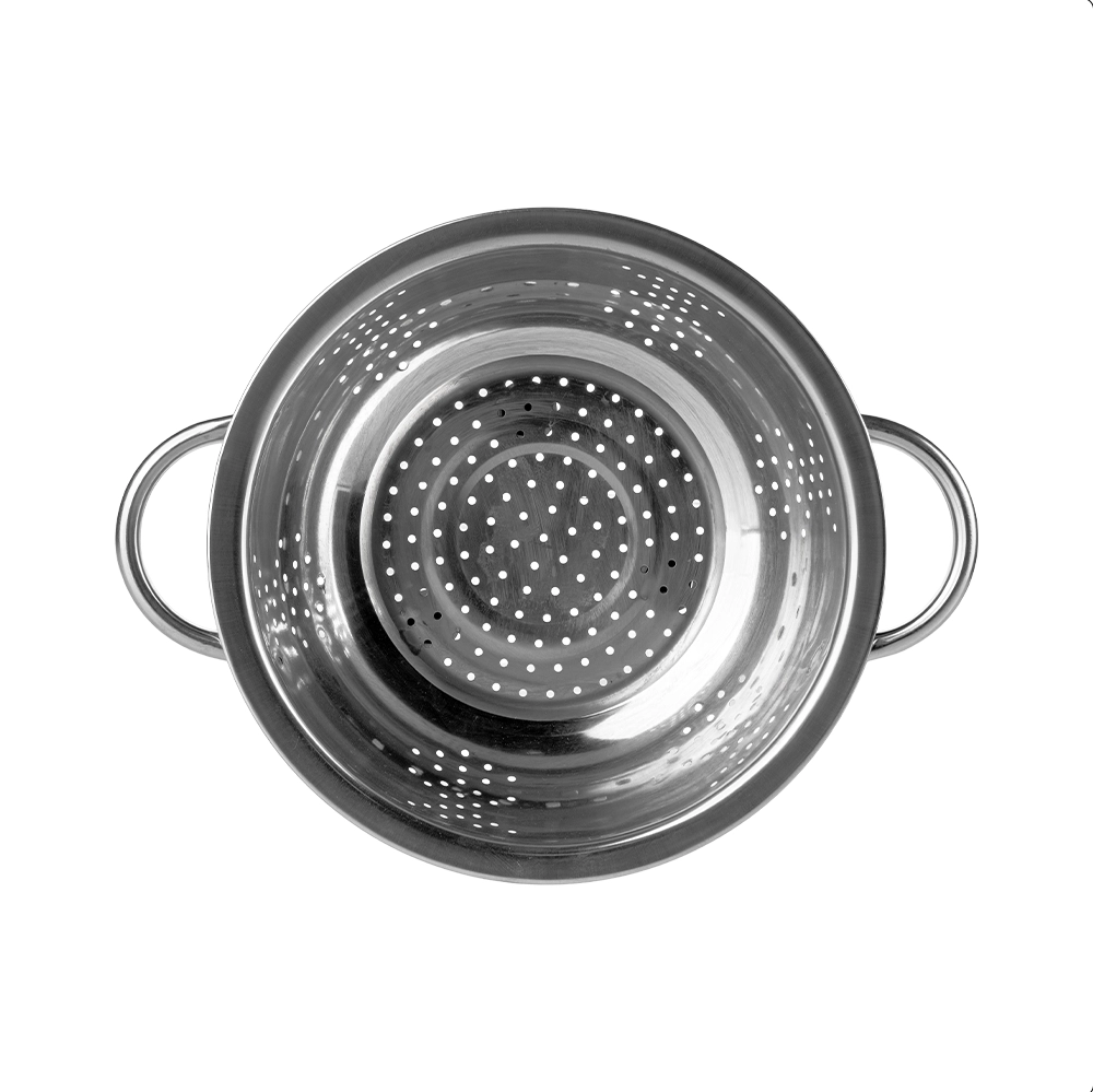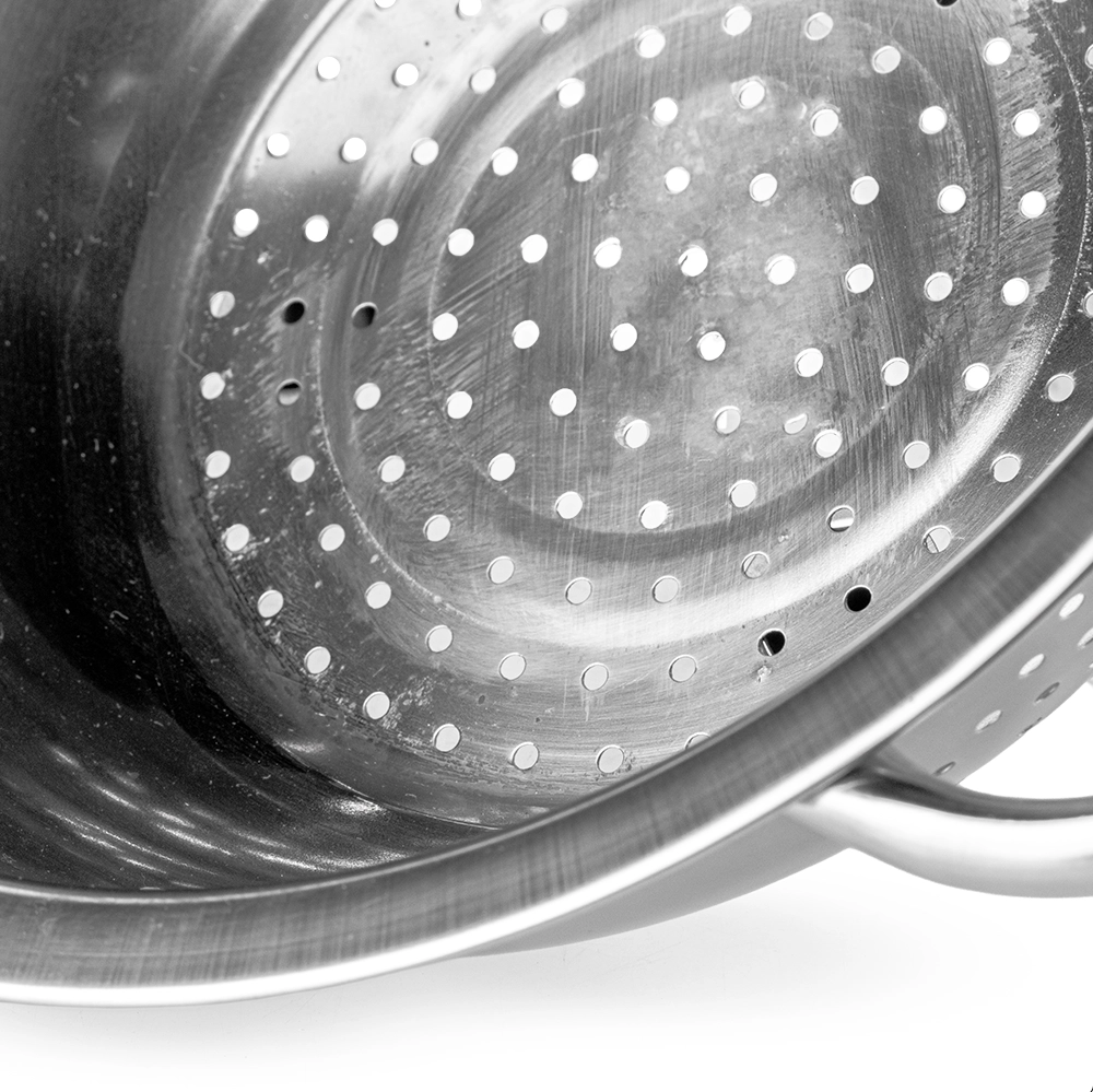 Sus asas dobles proporcionan un agarre cómodo y seguro, lo que facilita su uso incluso cuando está lleno. El diseño de este colador garantiza que puedas colar con total facilidad sin preocuparte por deslizamientos o derrames accidentales. Así mismo, su fabricación en acero inoxidable asegura resistencia a la corrosión y alta higiene.