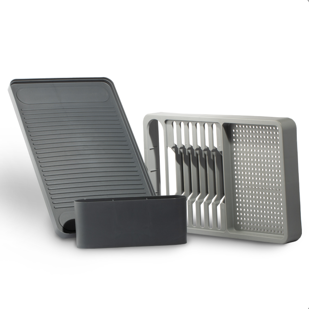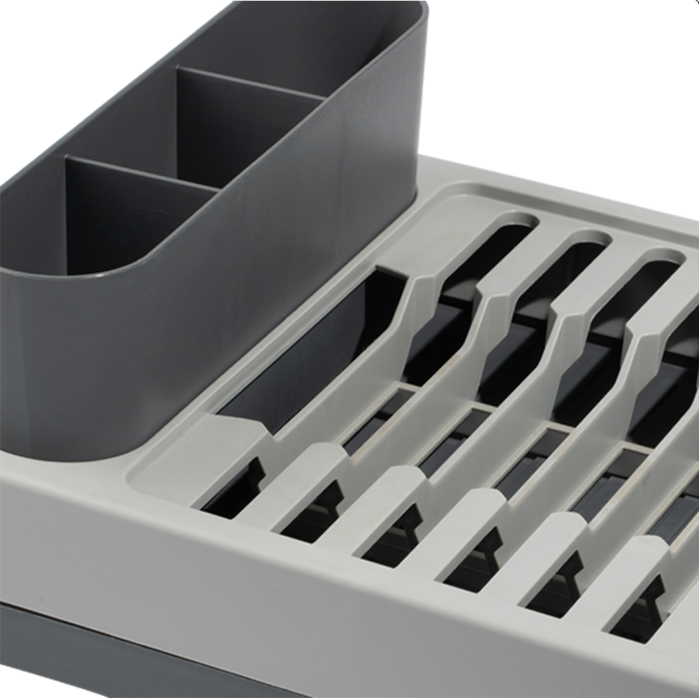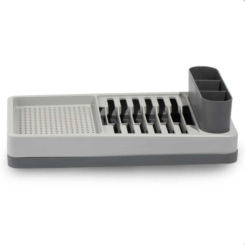 Con una medida de 42 cm de ancho, 26 cm de largo y 6.3 cm de alto, este escurridor ofrece la capacidad ideal para secar platos, vasos y cubiertos de forma eficiente. Además, su estructura ligera y resistente brinda durabilidad superior a los escurridores tradicionales, asegurando un uso prolongado sin perder funcionalidad. El acabado en color gris neutro permite que se adapte a cualquier estilo de cocina, desde las más modernas hasta las más clásicas. Gracias a su diseño atractivo, no tendrás que esconderlo después de usarlo, ya que aporta un toque de organización y estilo.