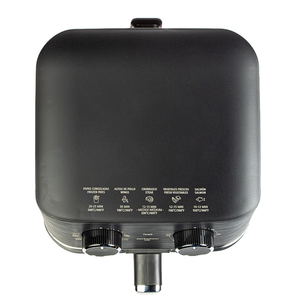 Su generosa capacidad de 4 litros permite cocinar un pollo entero de hasta 2.3 Kg de manera eficiente. El flujo de aire ultrarrápido con circulación de 360° garantiza una cocción uniforme y crujiente. Cuenta con controles manuales de tiempo (hasta 60 minutos) y temperatura (hasta 200ºC) de fácil ajuste. Podrás adaptar la cocción a todas tus recetas y preferencias culinarias.