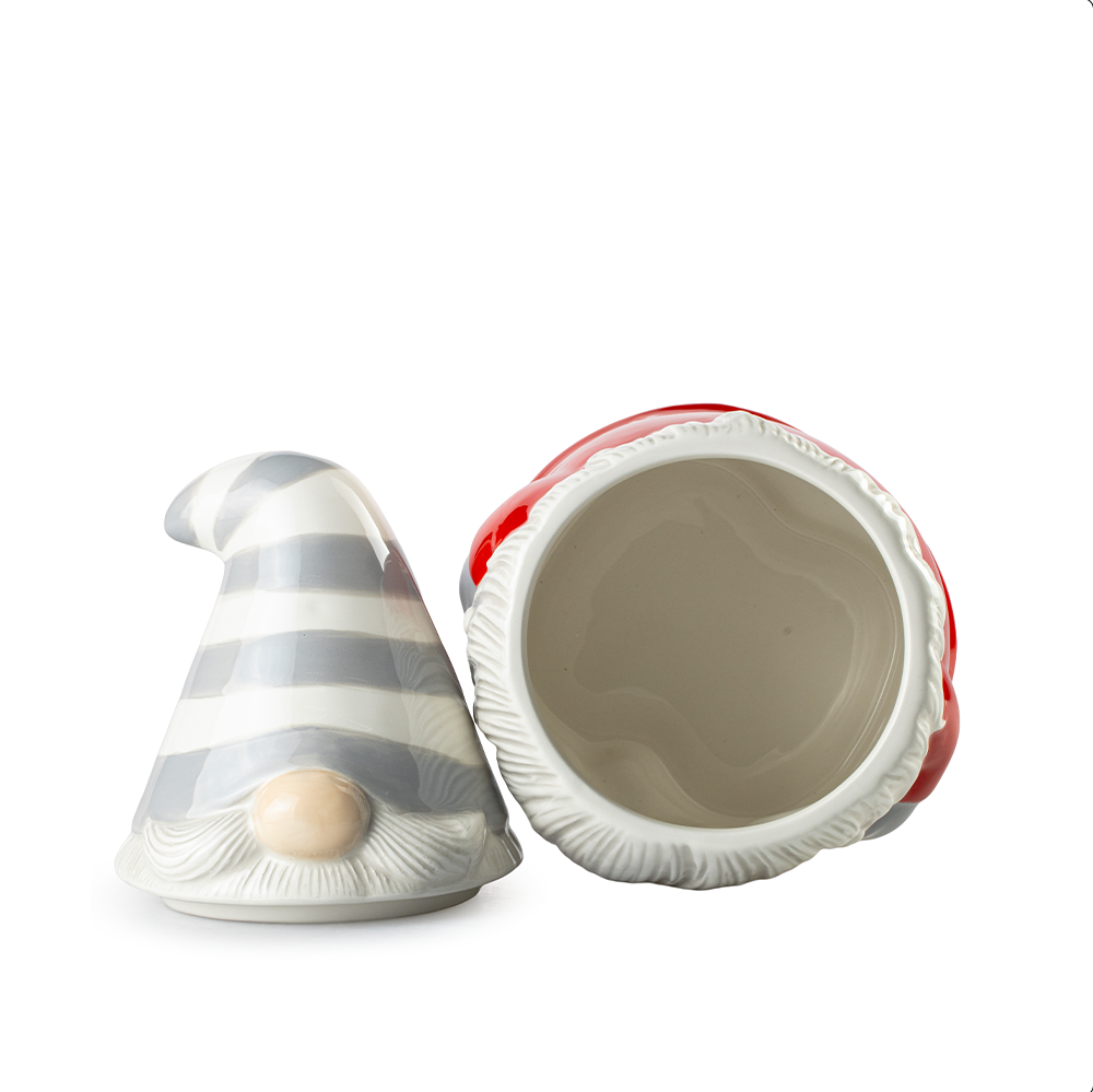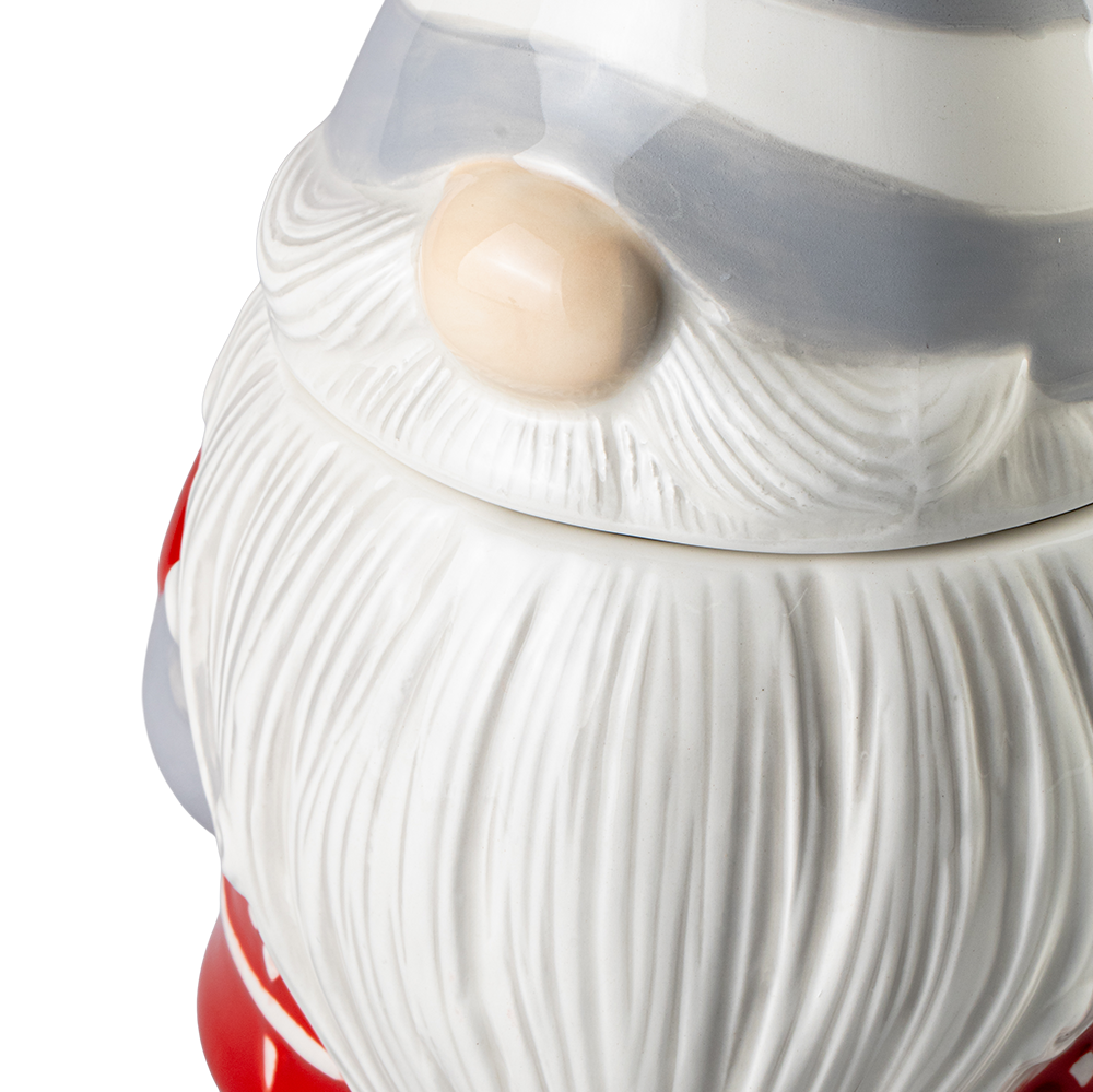 Introduce un toque de magia festiva con el singular Galletero Gnomo Barbadulces Cerámica Top Choice. Este encantador guardián es el vigilante perfecto para proteger tus golosinas navideñas. Por consiguiente, este galletero se convierte en una pieza decorativa de gran gusto y diseño temático. Inyecta alegría en cualquier espacio de tu hogar.