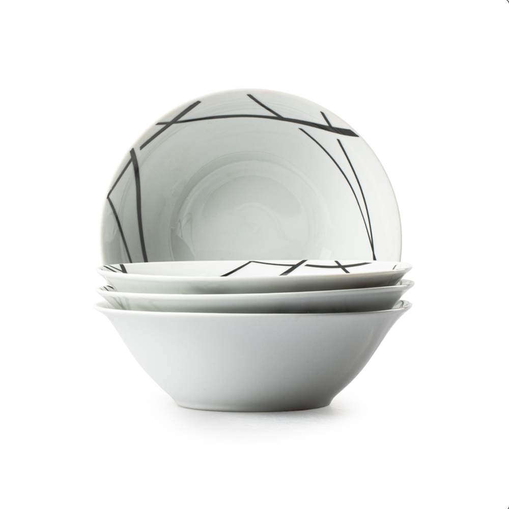 Su estilo Black Line se distingue por el detalle en líneas negras que rodean cada pieza. Un diseño minimalista que combina perfectamente con mesas modernas o clásicas. Además, su composición en porcelana blanca conserva la temperatura de los alimentos por más tiempo y aporta una sensación de pureza y sofisticación en cada comida.